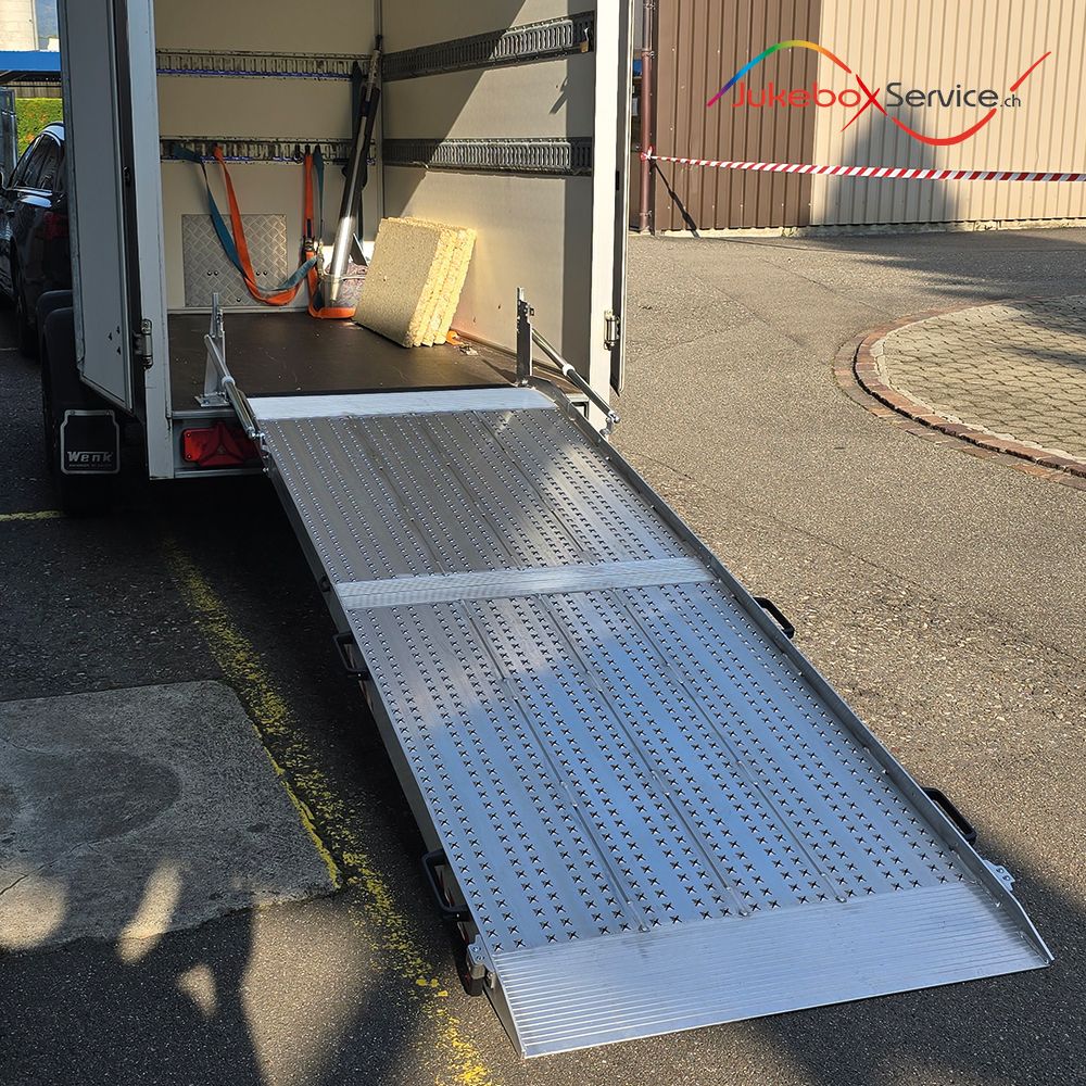 - 2-Achs Koffer Anhänger mit Befestigungssystemen und einer federunterstützten, abklappbaren 3 Meter langen und 1 Meter breiten Rampe für müheloses, professionelles Transportieren heikler Güter